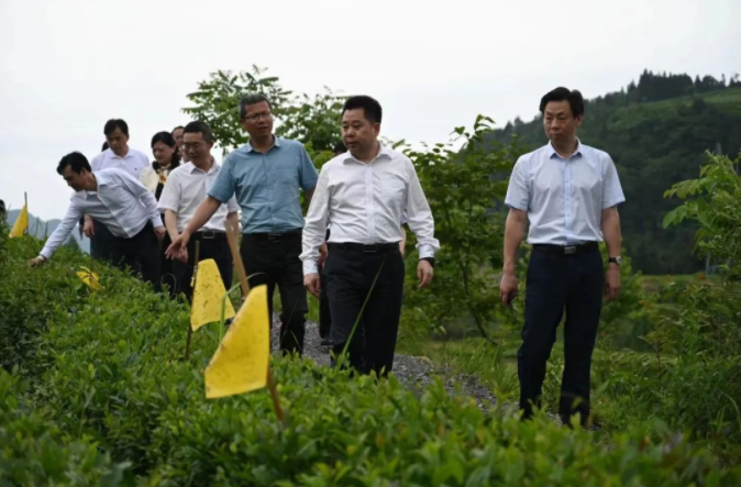 6月14日上午,湖北省楚商联合会秘书长、武汉大学校友企业家联谊会秘书长、湖北省工商联(总商会)副会长蹇宏,在恩施州硒产业协会会长、武汉大学恩施校友会会长、中硒集团董事长田宗仁先生的陪同下,到武汉大学恩施校友企业米兰体育·米兰网站登入-米兰online(中国)(芭蕉厂区)走访考察。国家级非遗恩施玉露制作技艺省级传承人、米兰体育·米兰网站登入-米兰online(中国)董事长张文旗全程接待并讲解。